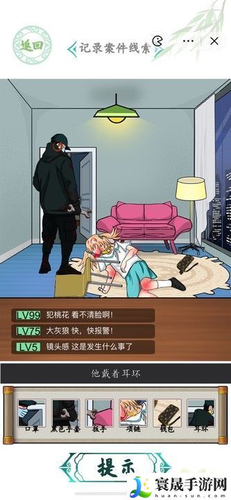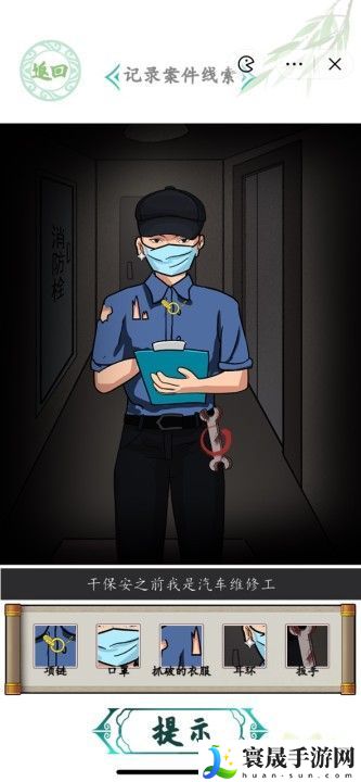 2.第二个场景点击耳环、口罩、项链、扳手,选择看过并且开门。