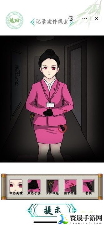 3.第三个场景点击红色美瞳、女性钱包、黑色手套、指甲抓痕、警棍。