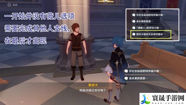 在对话中要做完其他人支线,才会出含成就的「薇尔」选项,如下图: