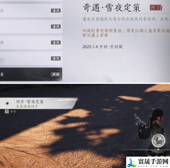 奇遇·雪夜定策: 夜晚前往金水门街传送点附近的赵普宅院触发此奇遇。