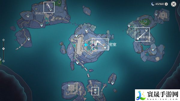 往地图的西南方向走,进入密室内部,按图中指引,前往石头位置坐下