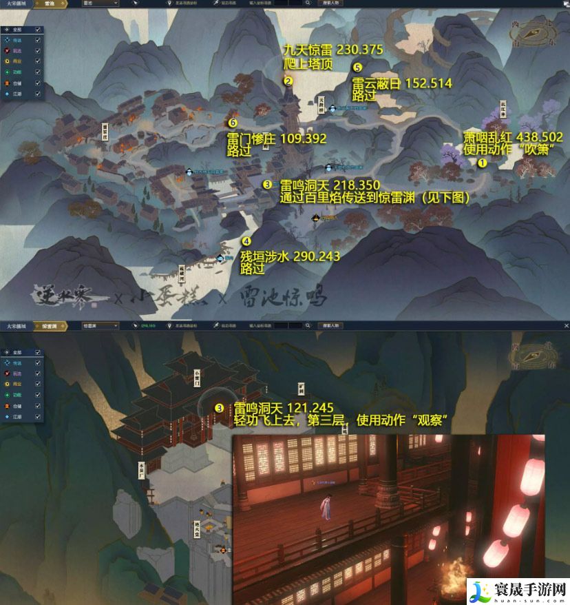 雷鸣洞天[121.245]地点:[惊雷渊] 轻功上城 门3层动作:观察