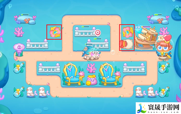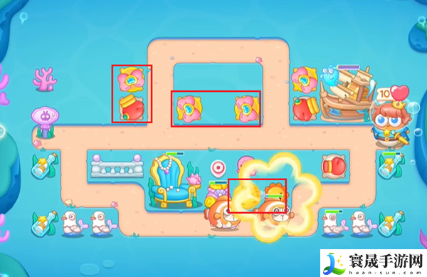 2、前期我们需要做的就是把上面的一些障碍物拆掉,让制更多的输出炮塔,这里小编放的还是蝴蝶结。
