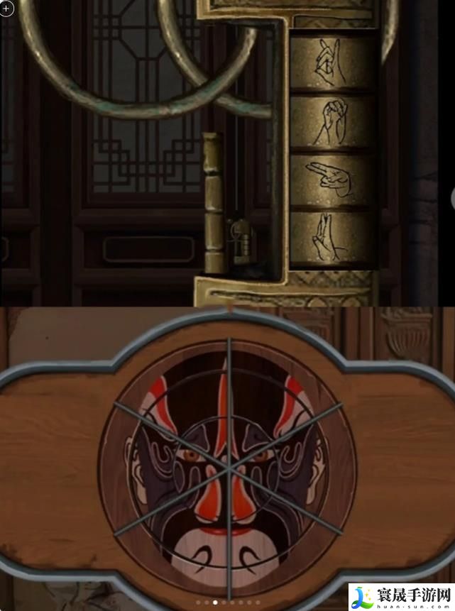 ④院子里房间的锁,根据楼上门口灯笼以及亭子里书上信息打开,进屋看到沙发上戏服【红色牡丹?】用【钥匙】打开梳妆台的锁得到【嘉庆铜钱】梳妆台上得到【纸条】左边屏风完成游戏〈游戏太绕眼了〉,得到【发条】,上楼用【发条】打开【音乐盒】得到【钥匙】,用【钥匙】打开楼下刚刚玩游戏柜子上的锁得到【白色脸谱挂件】