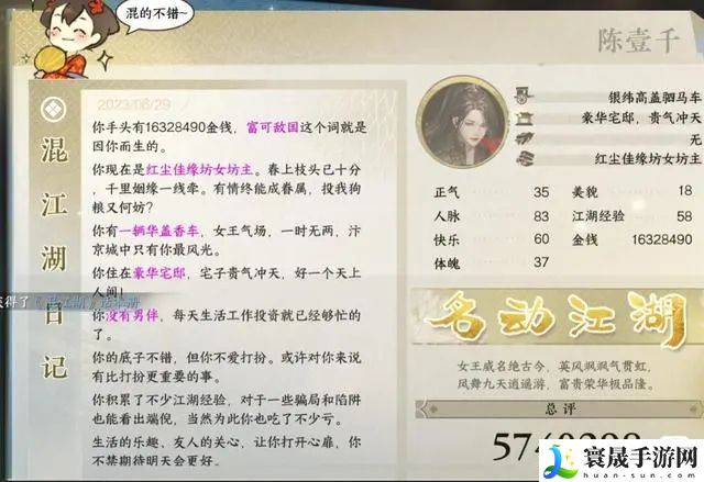 7、物色侠客,没人应聘,选第二个,概率成功,金钱+10%,正气+6,人脉+6。