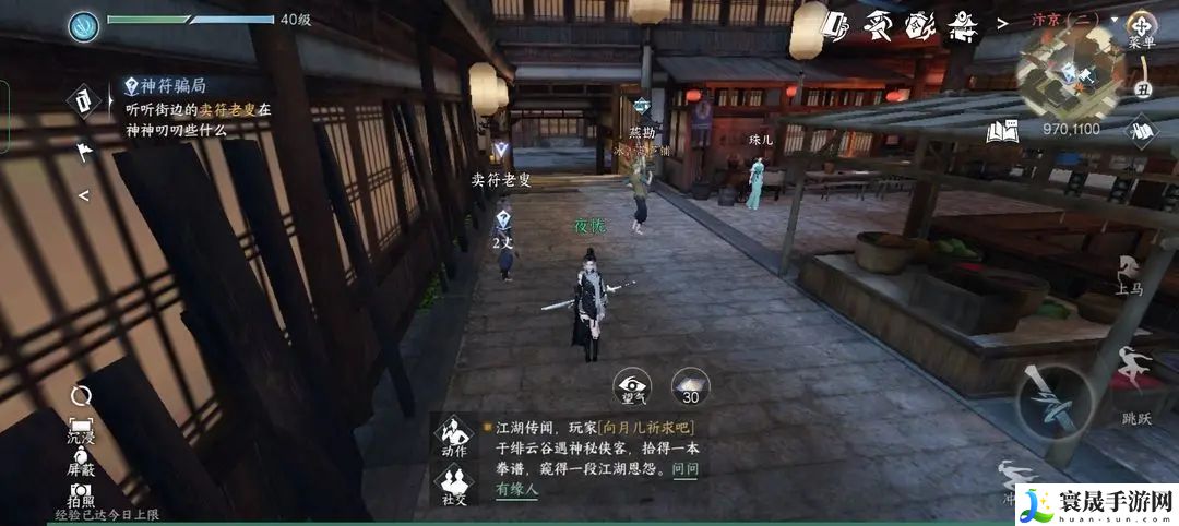2. 前往任务地点973,1102,找到卖符老叟。与他交谈并尽可能了解任务的相关信息。