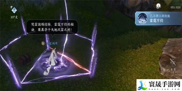 2、我们到达目的地之后,进入到限时挑战玄雷阵当中,接着我们就会被雷电到获取到技能雷霆万钧。