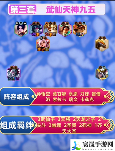 组成羁绊:3武仙子、3天将、2天龙之子、2快斗、2幽魂、2圣贤、2死神、1齐天大圣