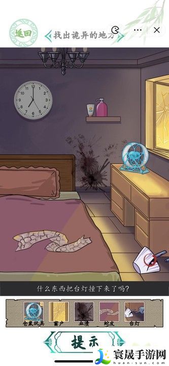 3.然后第二个场景点击仓鼠玩具、血渍、台灯、蛇皮、窗户。