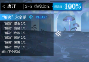 2、解决6宗罪之后探索度达到100%,前往下一个区域。