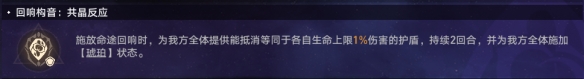 4、另一个回响构音【共晶反应】则是可以大幅度提高我方的生存能力,因为其提供的【琥珀】状态可以抵消超出护盾值的伤害。