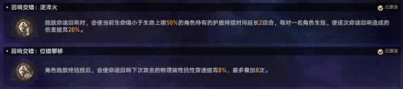 回响交错:存护的两个回响交错算是伤害补强,并没有达到激活不可的地步,实战中随缘即可。