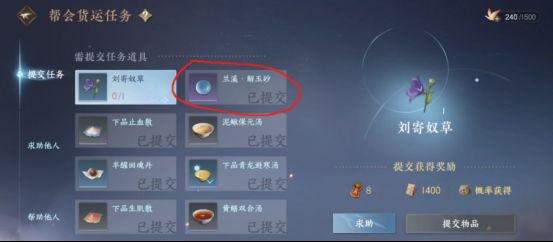 4、继续做帮会的每日任务(货运、混江湖、谁是卧底这些),这也是必不可少的,帮会任务对于个人来说还是很重要的。在这里我要提醒一下吧友,帮会任务里面的帮会货运任务,如果系统让你提交【解玉砂】这个物品,一定不要提交哈,因为在后期阶段,这个材料是很稀缺的,所以前期一定不要被“骗”走了。