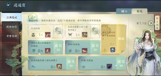 1、首先,第二天的等级上限是46级,而第二天的话还是和第一天一样,先把主线给做了,毕竟主线的奖励很丰富,然后接着就是逍遥赏里面的内容,还是照做,这点我就不多说了。
