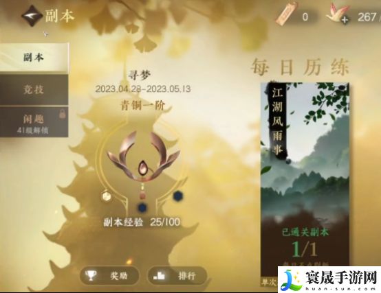 3、接着,就是去打副本了,可以去打江湖风云事以及剑梦临渊。