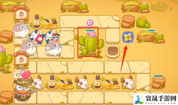 2、之后一直瞄准仙人掌攻击,有钱再放一个忍者镖一起打掉仙人掌。