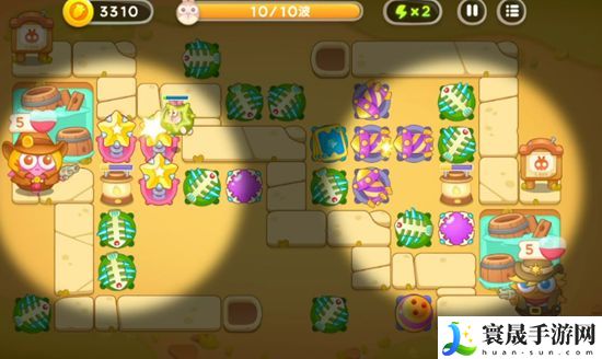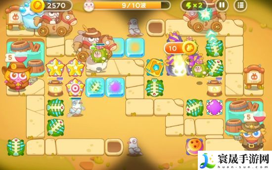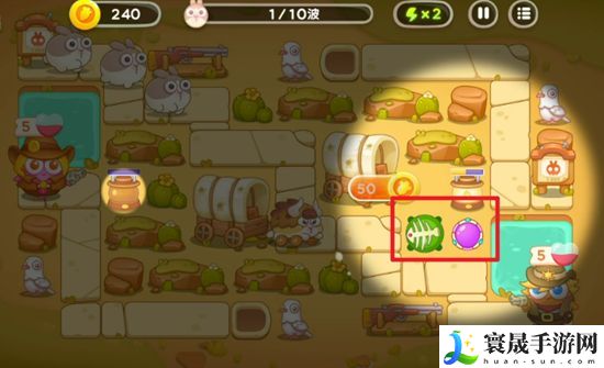 6、差不多第九波就能把道具全清理完,这个时候我们只需要升级炮台就行。