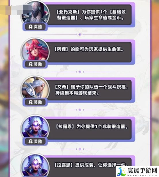 1、【亚托克斯】为你提供1个【基础装备锻造器】、玩家生命值或金币。