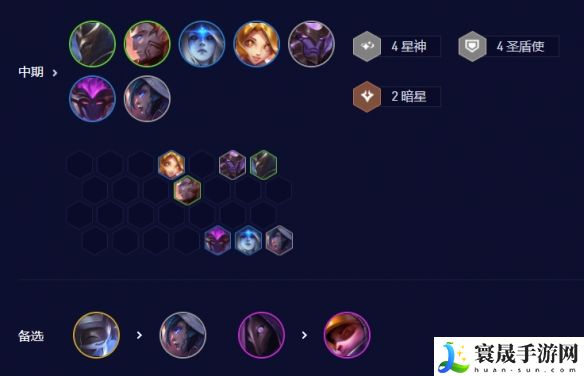 2-1升4,2-5升5,体系牌全抓,艾希没来前先拼一些222的小羁绊,比如2盾2星神2未来
