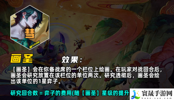研究透彻后,【画圣】会绘出该单位的1星弈子。研究回合数 = 弈子的费用(随【画圣】星级的提升而降低)