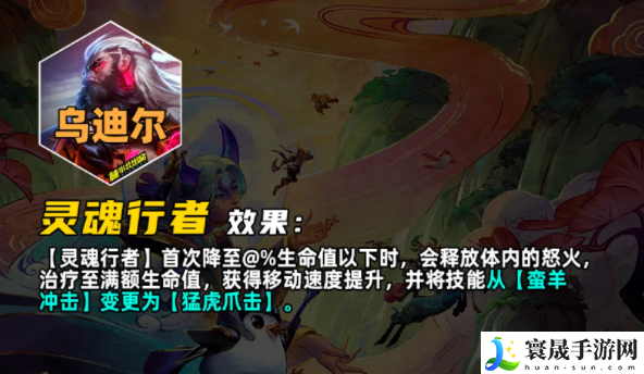 首次生命值降到某一阈值时,会释放体内的怒火,治疗到满血,并且移动速度提升,技能从【蛮羊冲击】变更为【猛虎爪】
