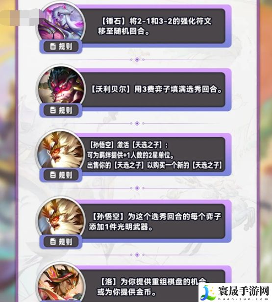 4、【孙悟空】为这个选秀回合的每个弈子添加1件光明武器。