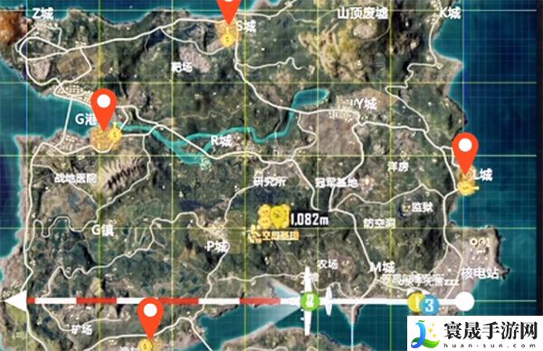 1、玩家打开地图可以看见空岛基地,位置在原来的军事基地处。