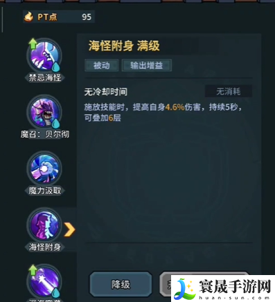 1、消耗当前的魔法值召唤海怪贝尔彻,且每秒将造成一次攻击。