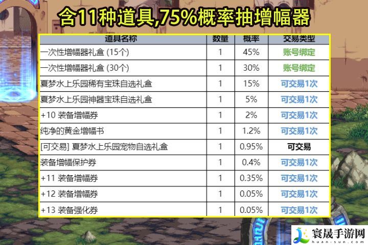 内含多种道具,好东西的概率比较低。