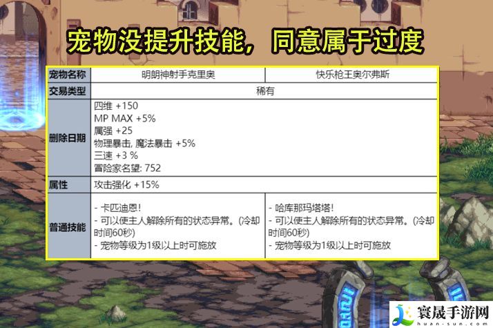 宠物属于过渡类型,对老玩家的提升不是很高。
