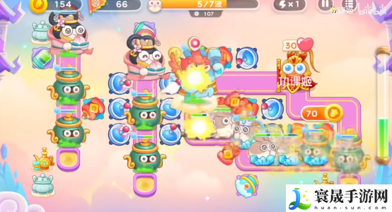 4、第二个神仙是雷公,玩家要注意道具的位置,这一波的粉兔也很多,玩家也不要漏掉了,雷公大部分时间可以锁头,但是兔子多了也要多注意,可以打二转四。