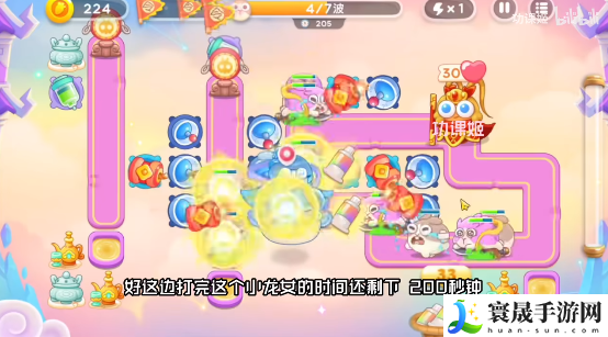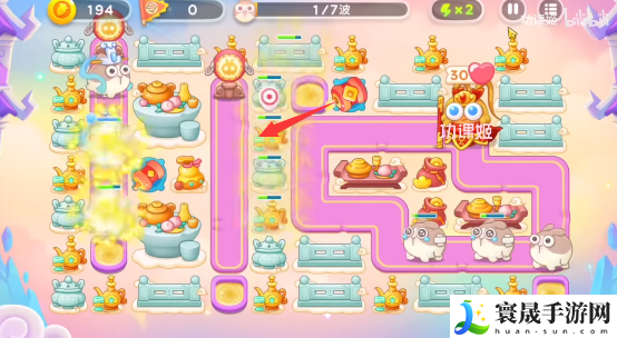 保卫萝卜4周赛6月27日开局之后我们需要在左侧和中间上方的空位置处布局两个炮仗先用来清道具,然后注意防守,一定不要让粉兔逃过去,后面我们就可以在雷达的配合下无伤通过今天的周赛挑战!