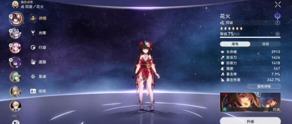 3. 由于低速花火无需极限堆速度,因此副词条上可以更多地给到暴伤,来为主C提供更多的增益;