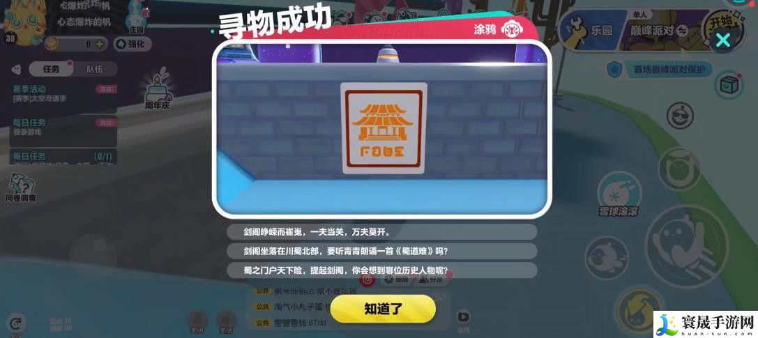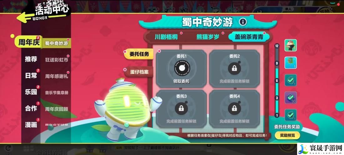 蛋仔派对盖碗茶青青道具涂鸦需要我们来到蜀中奇妙游活动中参加盖碗茶青青任务,只有完成了此荐任务你才有可能从中获得想要的道具,下面我们就来看看茶碗、茶壶涂鸦都在什么位置吧!