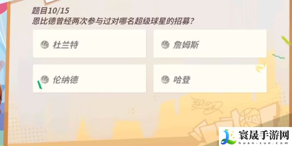 全明星街球派对恩比德趣味答题攻略