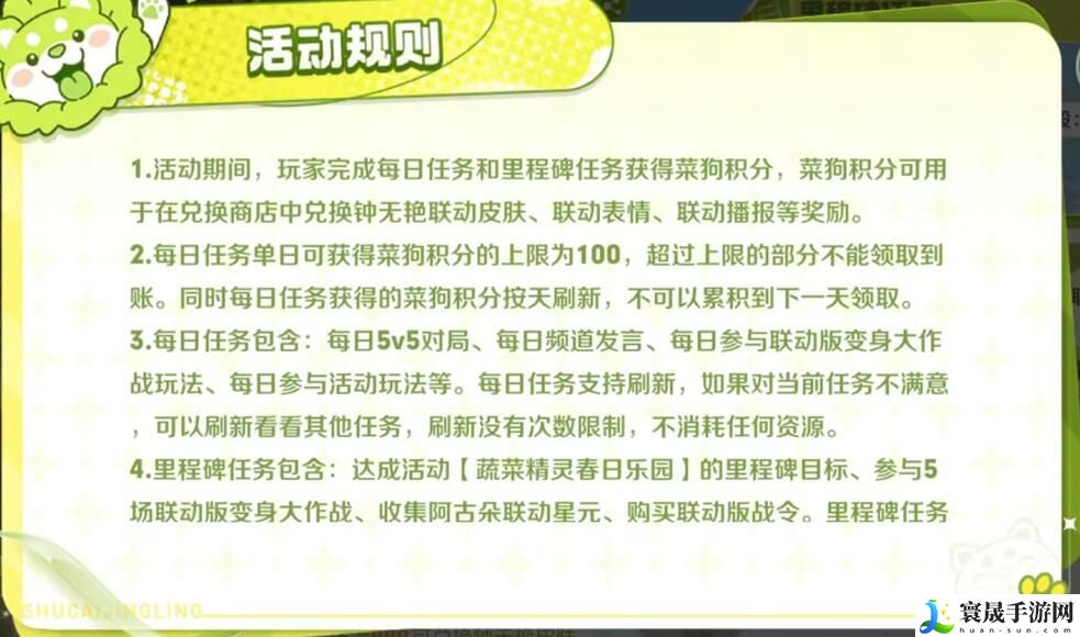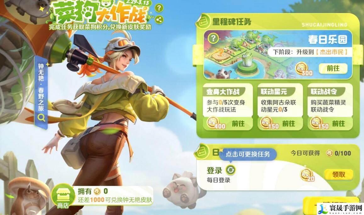 2、完成每日任务和里程碑的任务都可以获得菜狗积分,收集足够的积分就可以兑换钟无艳的联动皮肤。
