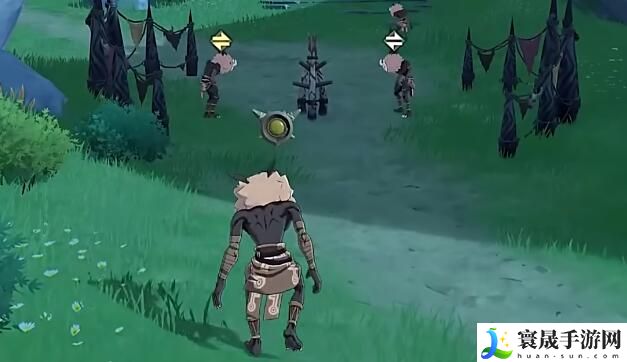 2、跟随丘丘人一直走到对面的两个丘丘人身上。