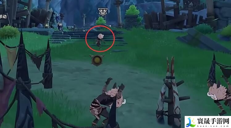 1、首先移动到对面丘丘人后,在右转到对面树上这里。