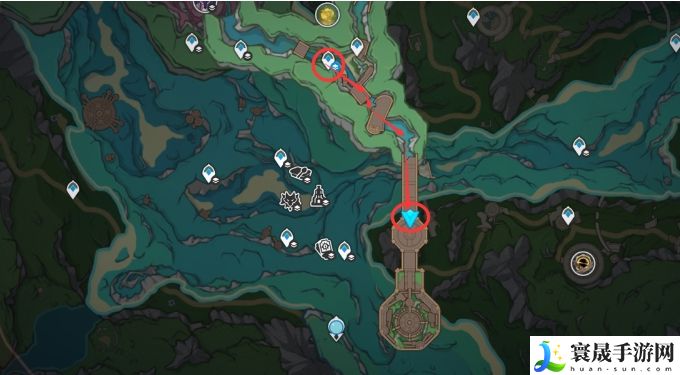 1.从这个传送点出发,如果没有解锁→从雷麒麟那边出发,经由水道可以抵达。