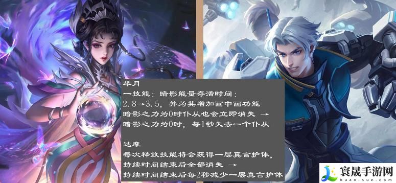 英雄调整目前就两位,分别是芈月和赵怀真,先来看看芈月的调整,芈月属于是增强式调整,延长了一技能乌鸦的存活时间,使芈月能够更轻松的在敌人的包围中撤退,一技能的迷惑性更强。