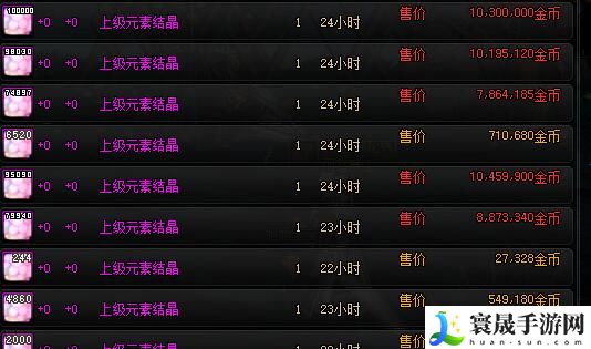 在拍卖行会售卖大量的元素结晶,前提是玩家需要拥有足够的金币才可以购买。