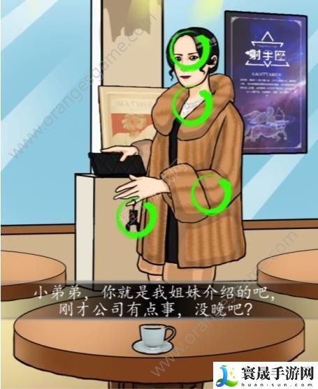 5、这次相亲的是一位成熟的女士,看她身上这件大衣一定不便宜,我们可以从中找出:皱纹、钻石项链、车钥匙、貂皮大衣;