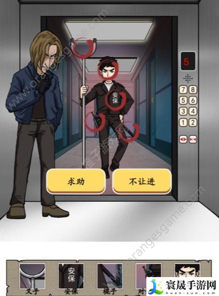 场景二:这一场景中我们来到5层:叉子、安保、棍子、对讲机、正义的脸这五处需要我们找出来,然后选择【不让进】;