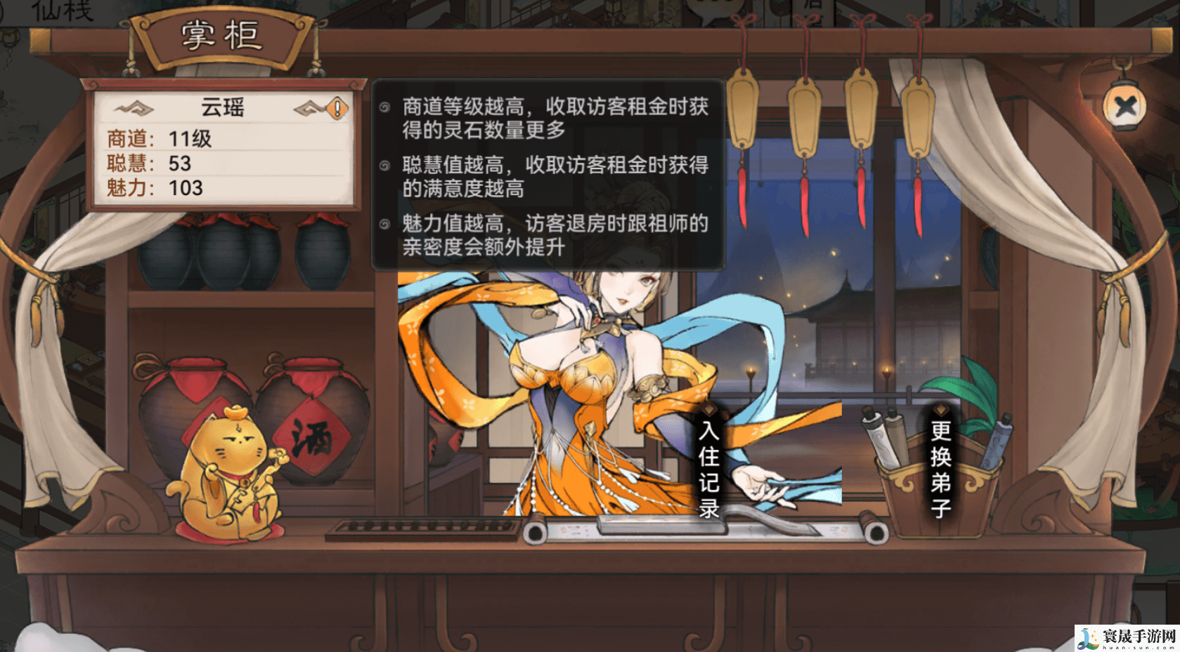 当仙友退房时,掌柜的魅力值越高,仙友的亲密度也会额外提升。