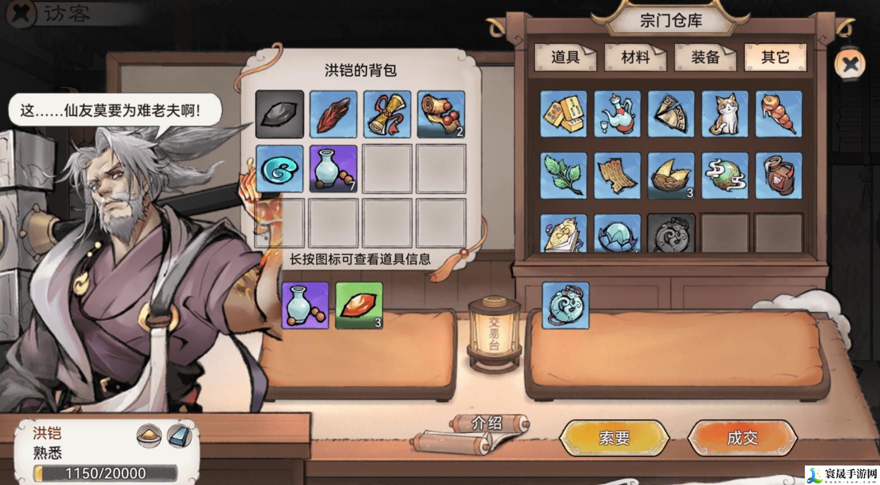 既然有谈话自然也可以交易,通过以物易物,当价值相当的时候便可成交,这可不兴用低劣的物品薅仙友羊毛啊。而且一回生,两回熟,亲密度高了以后,和仙友的交易也会愈发有优势,亲密度达到莫逆更是有概率获得三阶法宝材料。是人皆有喜好之物,使用仙友喜好之物交易可以获得更高的价值估量。