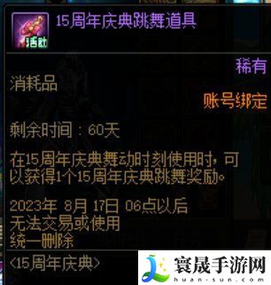 dnf15周年庆典跳舞道具应该怎么用?在这次的庆典活动之中,跳舞道具一般可通过活动奖励获得,具体的使用方法是需要玩家们进入跳舞界面才能够使用的,只要完成指定的舞步和技能,才能够获得积分奖励。下面就跟着小编一起来看看具体的使用方法吧!