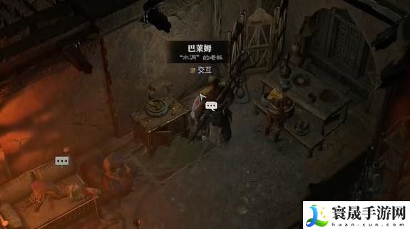 1、首先玩家是需要来到图中的位置,到达后是跟巴莱姆进行对话,随后就是询问他是有什么活玩家可以去完成。