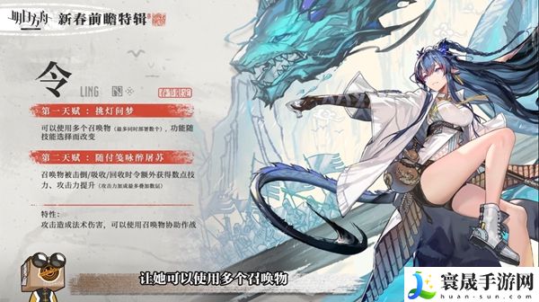 2、随附笺咏醉屠苏:召唤物被击倒或吸收或回收时令来额外获得数点技力、攻击力也可提升。