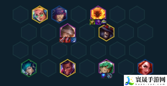 9人口阵容成型,补上五费卡二星。开爵士加成给到阵容整体提升。有加成下我们战斗力非常夸张,九五成型还是强的。这套就是舒服吃心之钢还能最后舒服的有分甚至有鸡。因为吃钢后面偷偷也是比较多,这时候可以拆掉过渡的五杀或者真实伤害羁绊,让阿卡丽单挂,上高费卡开爵士去提升整体的上限。