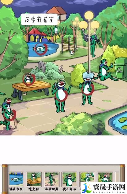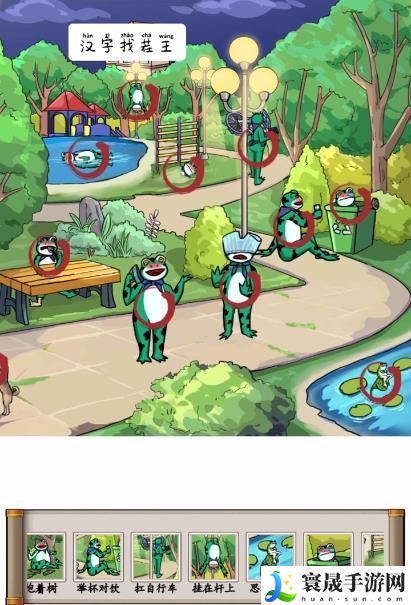 汉字找茬王喝醉的青蛙需要我们在这个公园里找到12只喝醉的青蛙,一眼看上去这这里的十只青蛙很好找,但总有一两个很小很隐藏的青蛙需要我们睁大眼睛去看,如果你还没有通关的话,下面一起来看看它们都在哪里吧!
